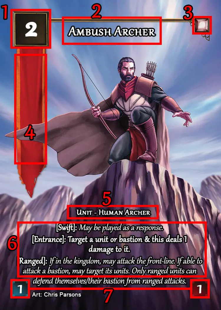 Exhaust (turn sideways) a unit you control on the battlefield and declare its target. That can be any unit on the battlefield, or a bastion if its player controls no rested (upright) units on the battlefield.